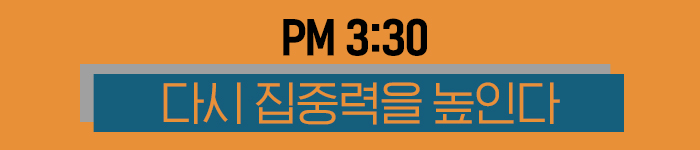 늦은 오후는 오전에 비해 훨씬 더 많은 잡념이 생긴다. 퇴근 후에 친구와 어디에서 무엇을 먹을지, 오늘 뜬 뉴스는 무엇인지 등 불필요한 잡념들이 집중을 방해한다. 이때 ‘지금 집중해서 일을 해야 야근을 피할 수 있다’는 생각을 반복적으로 하자. 할 일 중 적어도 한 가지는 완벽히 끝내야 마음이 편하다.