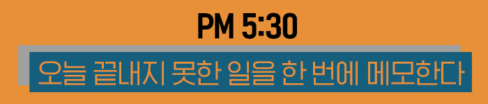 내일 할 일을 한눈에 볼 수 있도록 정리하자. 손으로 메모하면 업무를 잊지 않는다.