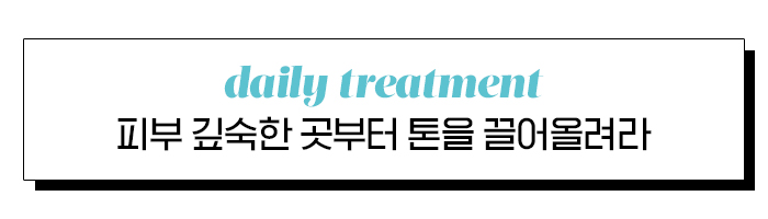 칙칙한피부를밝히는첫 단계는각질을걷어내는것으로부터시작한다. 과도한 각질이 불규칙하게 쌓이면 부분적으로 미세한 그늘이 생기고, 전체적으로 얼룩진 피부를 만들기 마련이니까. 그렇다고 매일 스크럽을 할 수는 없는 노릇이다. 이럴때비타민 C를영리하게사용해보자. 피부에비타민이 결핍되면 피부색은 칙칙해진다. 이때 정제되고 순도 높은 비타민 C를 바르면 탁한 피부색을 맑게 하고, 불규칙한 피부결은 고르고 매끈해진다. 피부 내면의 광채를 끌어올리기 위한 활력 부스터를 함께 사용해 브라이트닝에 시너지 효과를 더해도 좋다.
