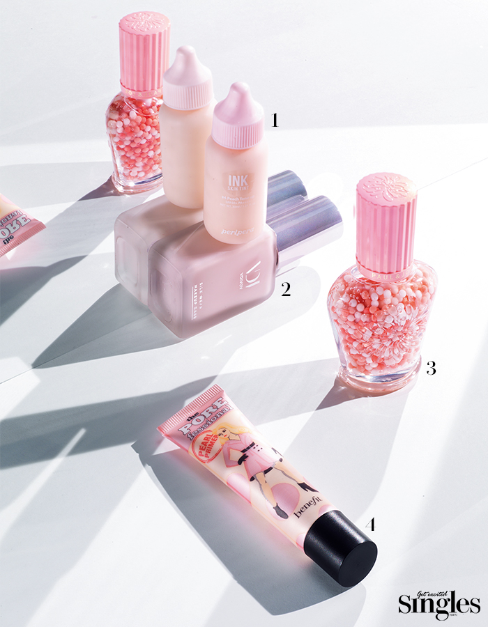 1 페리페라 잉크 뽀얀 스킨 틴트 4 피치 톤업 SPF 50+/PA++++ l 프라이머 바른 듯 매끈하게 발리고, 다크닝 없이 톤업 효과가 오래 유지된다. 30ml 1만원.