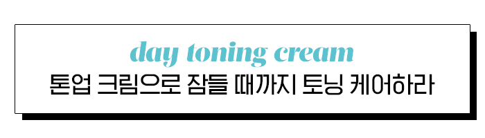 기존의 톤업 크림은 피부를 밝히는 데에만 집중해 메이크업 베이스 겸용으로 사용되는 것이 대부분이었다. 그러나 이제는 단순 톤업에 그치는 것이 아니라 피부의 장벽을 강화하고, 멜라닌의 생성과 이동을 억제하는 완벽한 스킨케어 토닝 크림으로 출시되는 추세다. 미백 주사의 주성분인 글루타치온이 함유되어 근본적인 톤업 개선에도 효과적이다. 피부를 밝히는 건 민감한 피부의 진정을 돕는 칼라민, 일명 핑크 파우더로 해결한다. 진주가루 입자가 함유되었거나 징크옥사이드를 활용하기도 한다. 덕분에 취침 전에 바르는 것도 가능하다. 진짜 스킨케어 톤업 크림이 나타난 셈이다.