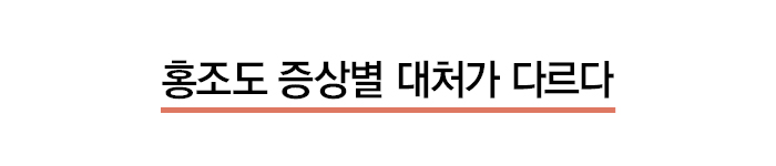 가을철 기온이 낮은 실외에서 따뜻한 실내로 들어오거나 야외활동이 잦아질 때 붉어진 얼굴이 쉽게 가라앉지 않는다면 안면홍조를 의심해야 한다. 얼굴이 붉어지는 증상을 오래 놔두면 주사(Rosacea)라는 만성 피부 염증성 질환이 생길 가능성이 높아지는데, 보통 피부가 민감한 경우 많이 가렵고 따가울 수 있다. 제때 치료를 하지 않고 방치하면 영구적인 모세혈관 확장증이 생겨 일 년 내내 얼굴이 붉어 보이는 것이다. 심하면 눈 부위 흰자위 혈관까지 붉어지고 딸기코처럼 코 부위도 붉어질 수 있기 때문에 홍조는 방치하면 안 되는, 해결이 시급한 증상이다. 다만 홍조가 있다고 해서 100% 주사로 진행되지는 않는다. 하지만 주사 환자의 초기 증상이 홍조로 나타나므로 이를 방치했다가 급격히 악화될 경우 피부 장벽이 손상돼 다양한 피부 트러블은 물론 노화를 불러올 수 있다. 때문에 유발 인자들을 피하고 증상에 따른 스킨케어를 병행하는 것이 좋다. 스킨케어만으로도 호전이 되지 않을 경우 가까운 피부과를 방문해 정확한 진단을 받고 먹는 약이나 바르는 연고 등의 처방을 받는 것이 좋다.