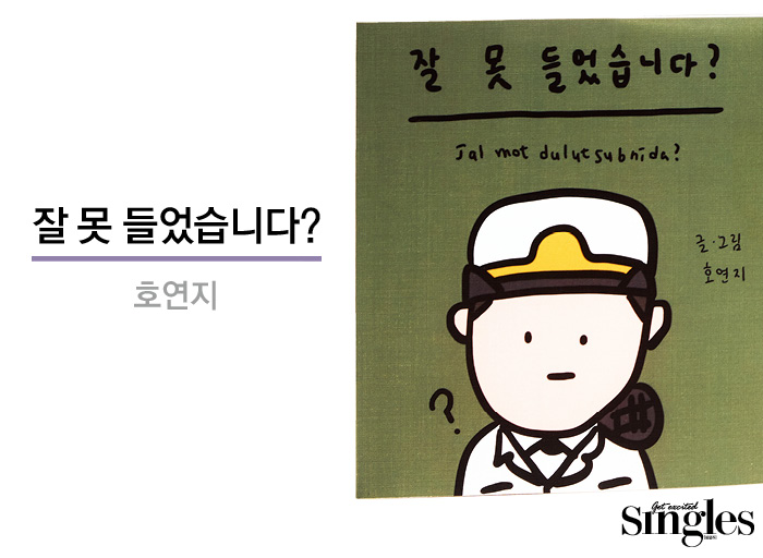 5년간의 해군 생활을 마치고 전역한 여군의 그림일기다. 철저한 계급사회인 군대 안에서 여군으로, 초임 간부로 살아남기 위해 고군분투했던 기억들을 그림과 글로 기록했다. 제목의 ‘잘 못 들었습니다?’는 군대에서 쓰는 말로, “예?” 또는 “뭐(라고여)?”에 해당하는 일상용어. 군대에서는 대답할 때의 “예!”는 쓸 수 있지만, 되물을 때의 “예?”는 쓰지 못하기 때문에 이를 대신해서 쓰는 말이라고.