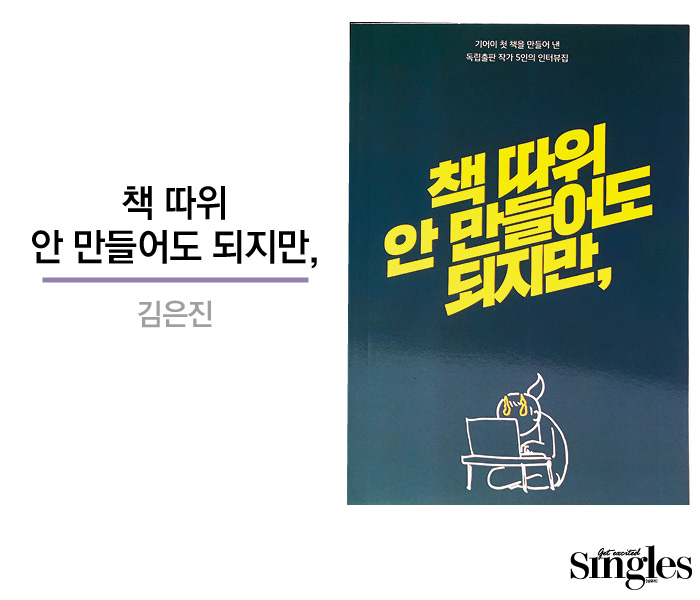 저자를 포함한 5명의 독립출판 작가들의 인터뷰가 담겼다. [밥은 잘 먹고 다니니?]의 고은지, [저 청소일 하는데요?]의 코푸왁, [모든 동물은 섹스 후 우울해진다]의 김나연, [혼자 해보겠습니다]의 고혜정, [책갈피의 기분]의 김먼지 작가가 첫 책을 만들었던 시간에 대한 이야기를 들려준다. “나도 책 한번 만들어보고 싶은데”라는 마음이 든다면 추천한다.