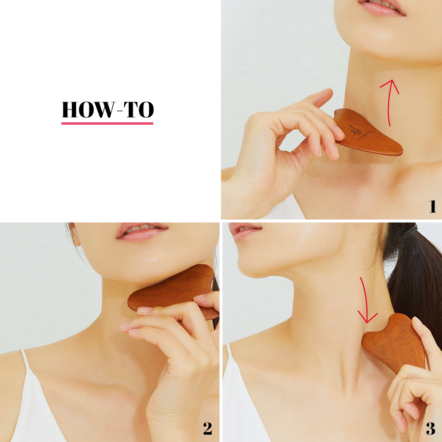 목은 얼굴에 비해 모공이 작고 스킨케어 제품의 흡수율이 낮기 때문에 눅진한 텍스처를 지닌 마스크 제품을 선택해 충분히 바른 뒤 괄사 마사저로 쓸어올리듯 마사지하는 것이 좋다. 더 히스토리 오브 후의 진율향괄사 마사지 마스크는 깊은 양 성분이 함유돼 피부를 윤기 나게 만든다.