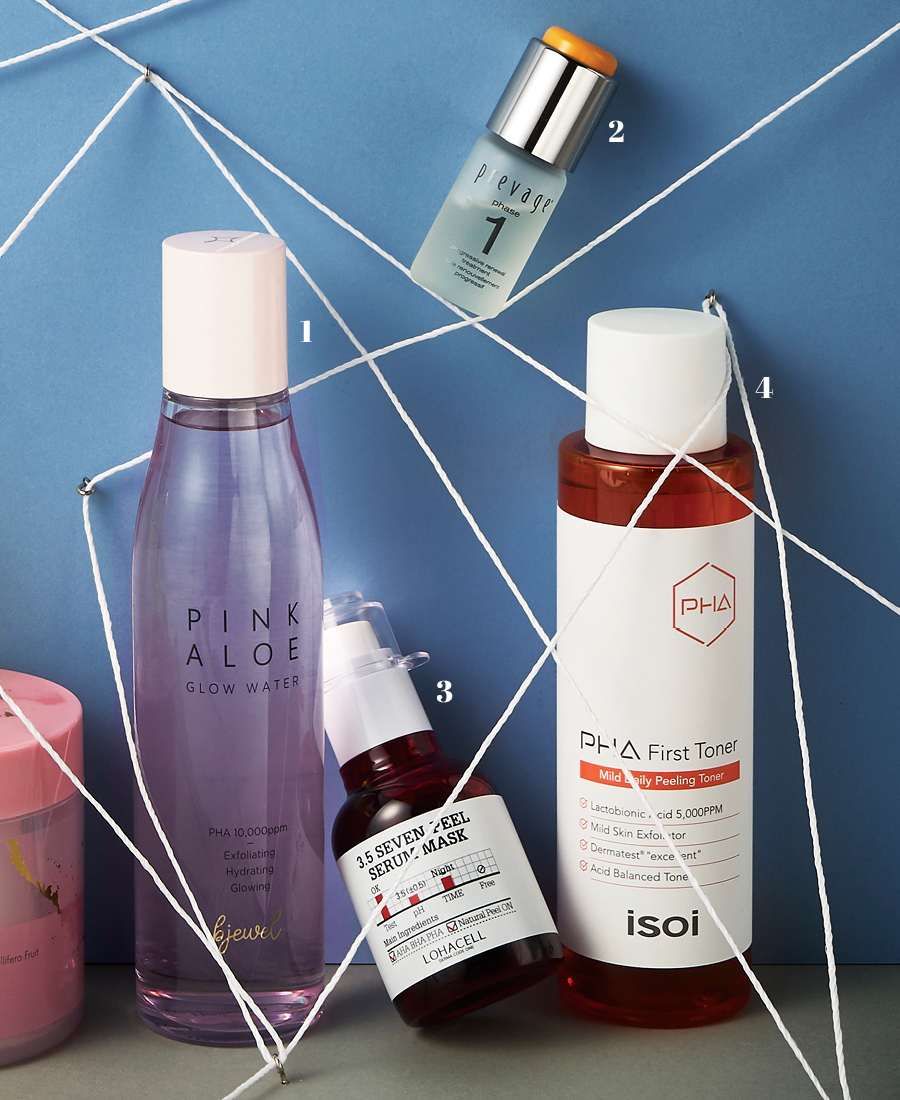 그렇다면 PHA 성분의 효과를 극대화하는 스킨케어 궁합은 무엇일까? PHA가 순한 성분이라 모든 피부 타입에 적합하지만 극도로 민감하고 예민한 피부라면 PHA 토너부터 사용해보기를 추천. 화장솜에 묻혀 닦아내는 ‘닦토’보다 손으로 흡수시키는 ‘흡토’법을 권장한다. PHA와 상극인 성분은 별도로 없지만 물리적으로 자극을 주는 제품은 함께 사용하지 말 것. PHA 성분이 이미 각질을 탈락시킨 상태에서 추가적으로 자극을 가하면 피부가 탈 날 수밖에 없다. 수분을 끌어당기는 성질이 있으니 보습이나 수분 제품과 함께 사용하면 피부 안팎으로 촉촉함이 차오르는 수분광 피부로 가꿀 수 있다.