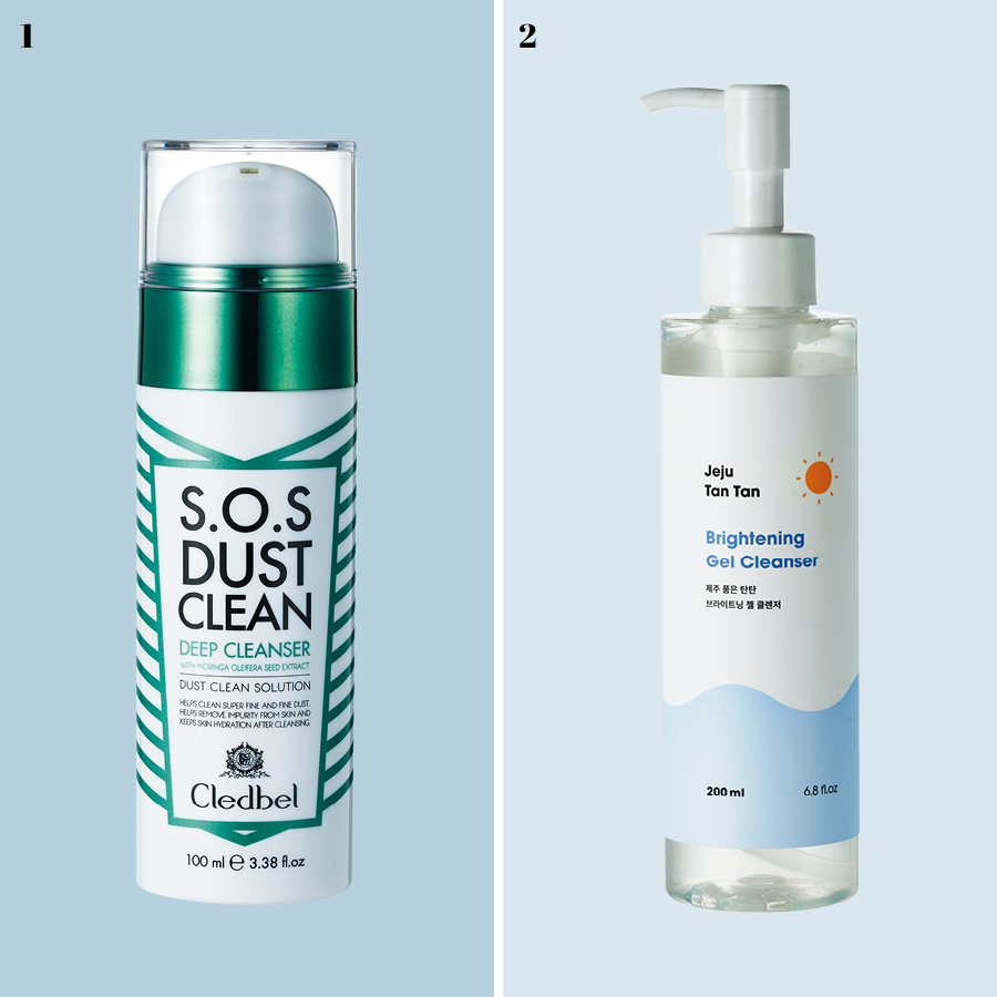 1 끌레드벨 S.O.S 더스트 클린 딥 클렌저 자연 유래 핵심 성분인 모링가씨가 미세먼지를 흡착 케어한다. 이는 피부 묵은 각질과 모공 케어에도 도움을 준다. 100ml 2만8000원.