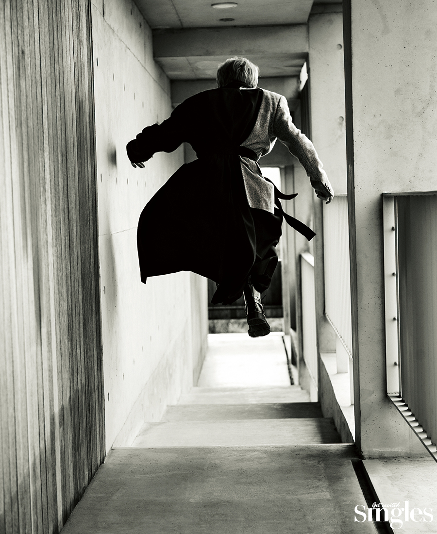 코트 장광효 카루소, 스카프와 팬츠 스타일리스트 소장품, 슈즈 닥터마틴.