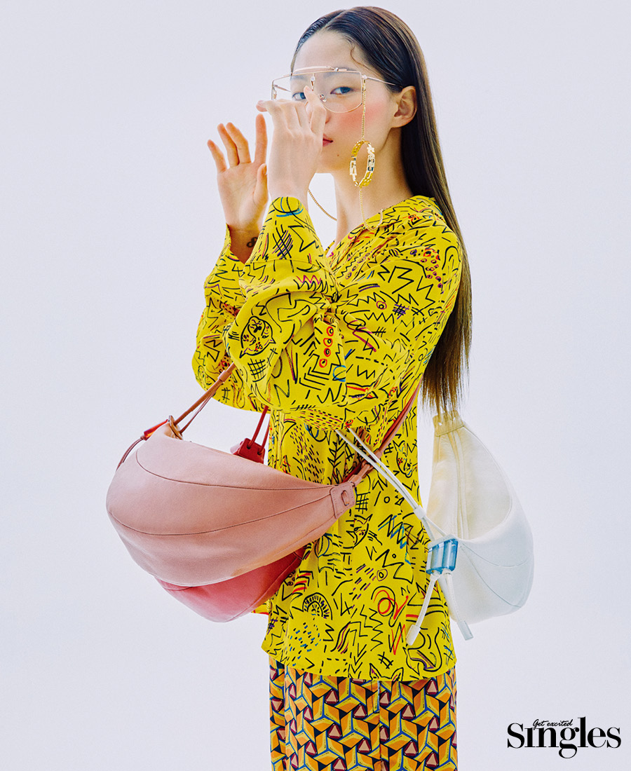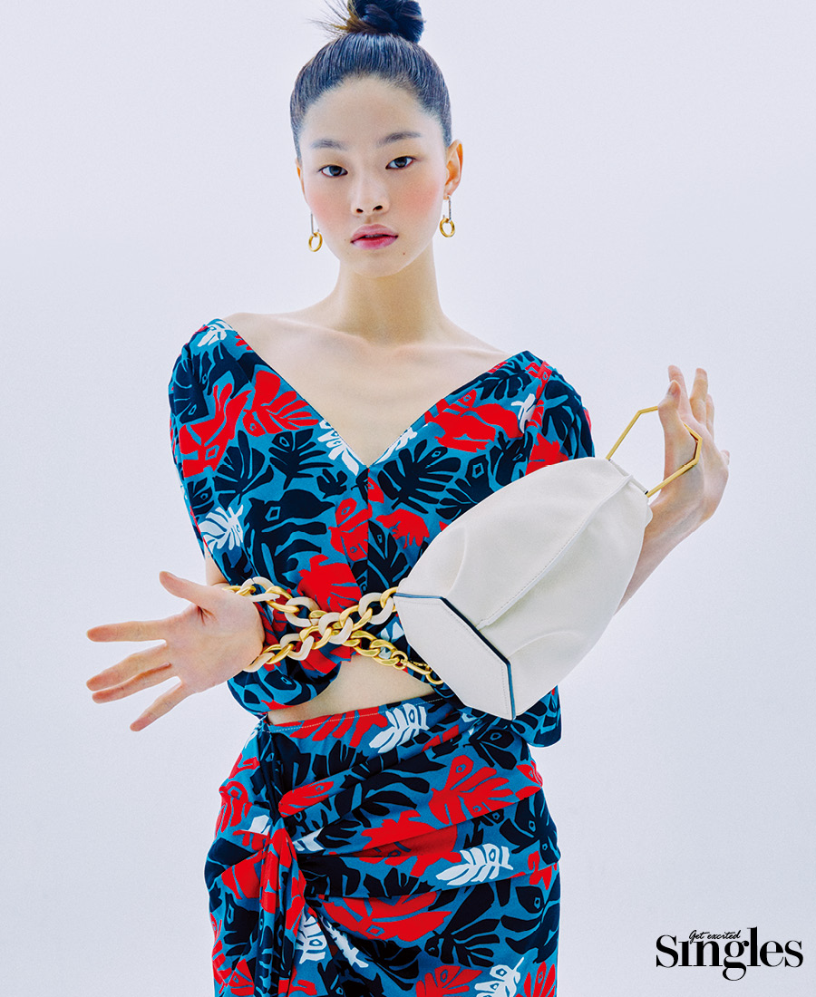 백 루에브르 31만9000원, 체인 스트랩 루에브르 7만9000원, 톱 마르니 214만원, 스커트 마르니 196만원, 이어링 일레란느 5만8000원.