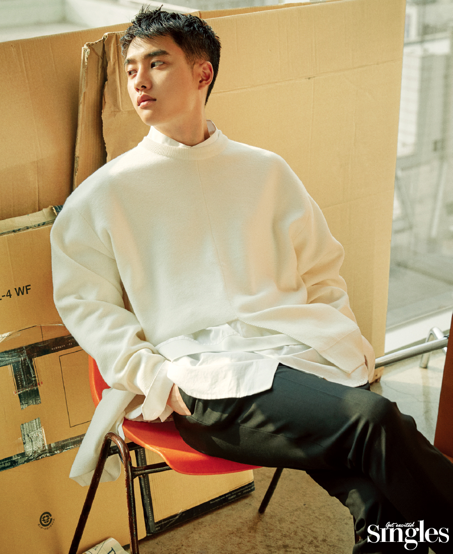 엑소 멤버들이랑 사이가 돈독해 보인다. 올해로 데뷔 8년차, 엑소는 어떤 의미인가. 평생 친구다. 멤버들 한 명 한 명 다 진짜 너무 좋다. 의리 있고 착해서 언제나 편하고 집 같은 존재들이다.모두에게 사랑 받는 엑소, 도경수로 사는 기분이 어떤가. 인터넷에 자기 이름 검색해본 적 있나? 없다. 인터넷을 잘 안 한다. 핸드폰도 잘 안 본다.