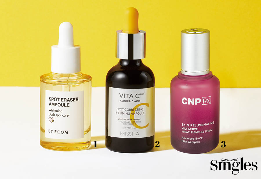 1 바이애콤 스팟 이레이저 앰플 비타민 C의 여왕이라 불리는 금귤을 앰풀 속에 77% 담아 지친 피부를 빠르게 회복시킨다. 비타민 및 과일 콤플렉스가 함께 들어 있어 생기를 주는 무자극 비타민 화이트닝 앰풀. 30ml 3만5000원.