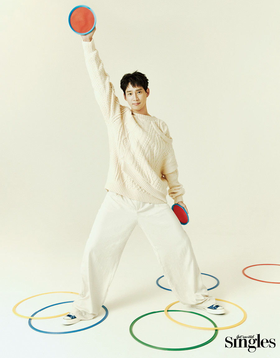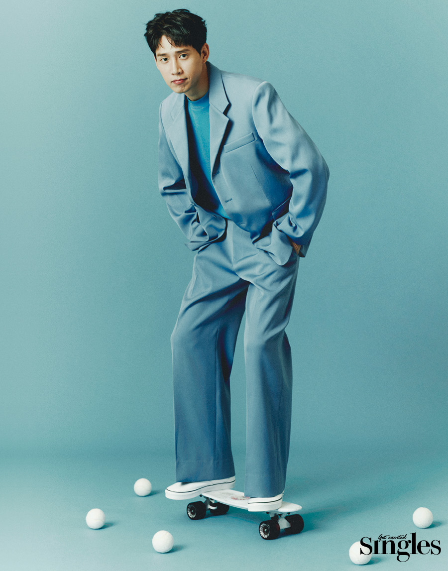 오늘 촬영은 어땠나. 진중한 박성훈에게서 이런 모습을 발견할 줄은 정말 몰랐다. 무척 새롭고 재미있었다. 가까 운 사람들과 함께일 때의 자연스러운 모습을 화면에 담을 수 있어서 감회가 남다르다.