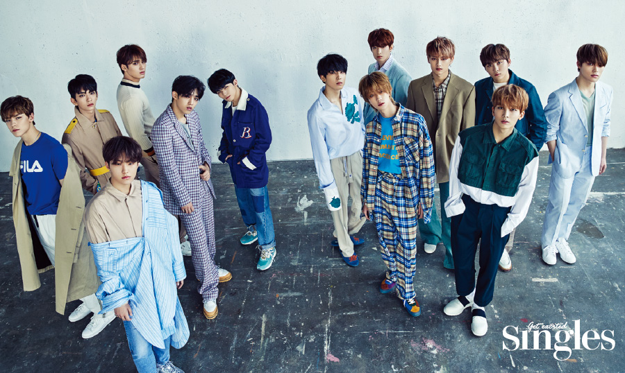 버논 코트 노나곤 by 비이커, 톱 휠라, 팬츠 오디너리피플, 슈즈 렉켄. 조슈아 코트와 톱 모두 비욘드클로젯. 민규 니트 비비안웨스트우드, 팬츠 김서룡. 호시 롱 셔츠 빅팍, 이너 코스, 팬츠 에이글로우. 에스쿱스 재킷과 팬츠 모두 김서룡, 이너 클럽모나코, 슈즈 오니츠카타이거. 우지 점퍼 비욘드클로젯, 이너 자라, 팬츠 푸시버튼, 슈즈 플랫폼. 원우 톱 카루소, 팬츠 스타일리스트 소장품, 신발 타미. 도겸 재킷 뮌, 톱 슈퍼콤마비. 준 코트, 톱, 팬츠 모두 오디너리 피플, 슈즈 아디다스 오리지널. 디에잇 재킷과 팬츠 모두 아더에러, 톱 베이에잇, 슈즈 반스. 승관 재킷 아크네 스튜디오, 톱 세인트 제임스. 정한 셔츠 준지, 팬츠 카루소, 슈즈 닥터마틴. 도겸 재킷 뮌, 톱 슈퍼콤마비. 디노 재킷, 팬츠 모두 아르코발레노, 톱 코스, 슈즈 휠라.