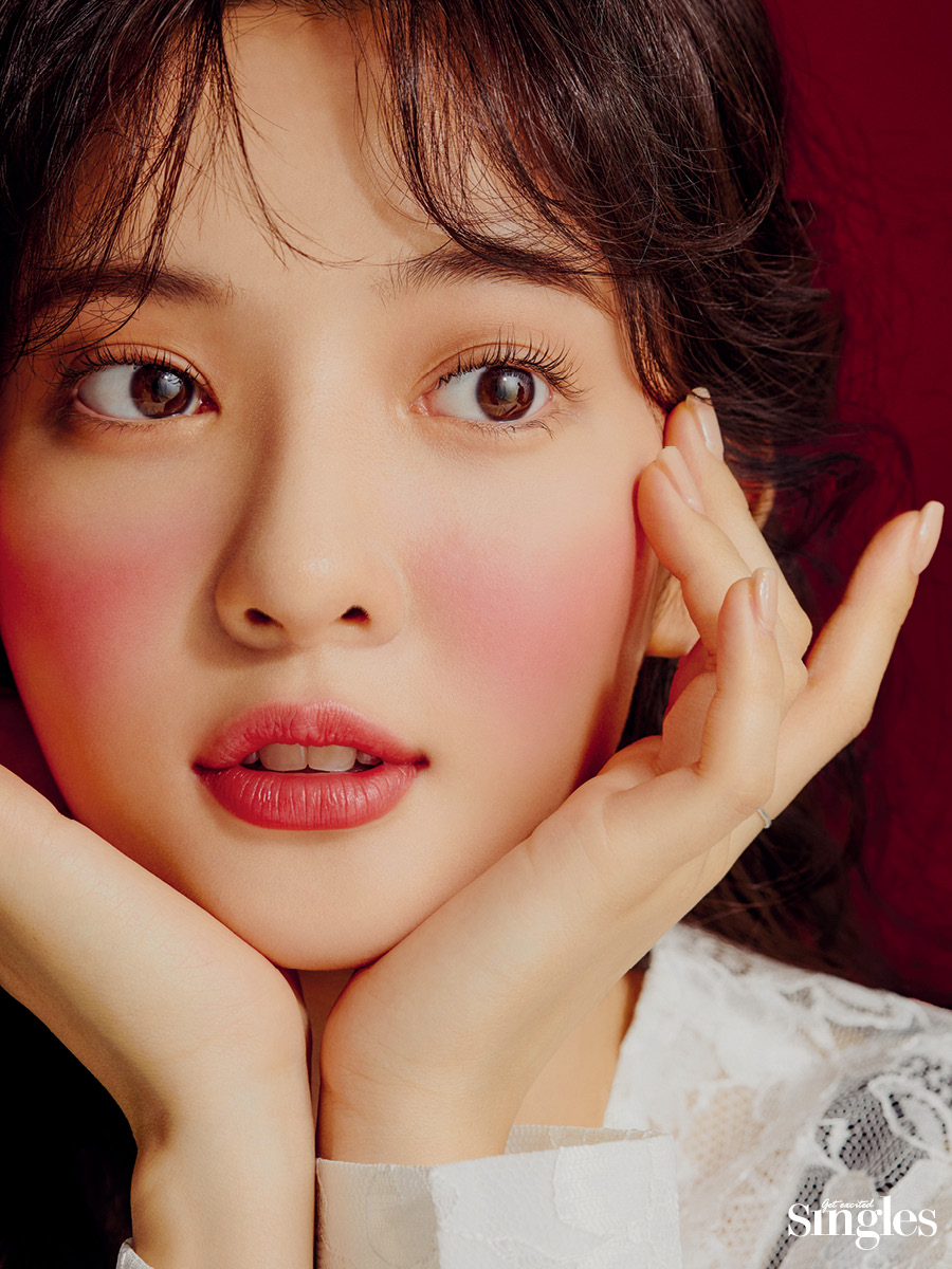레드 컬러로 물들인 두 뺨