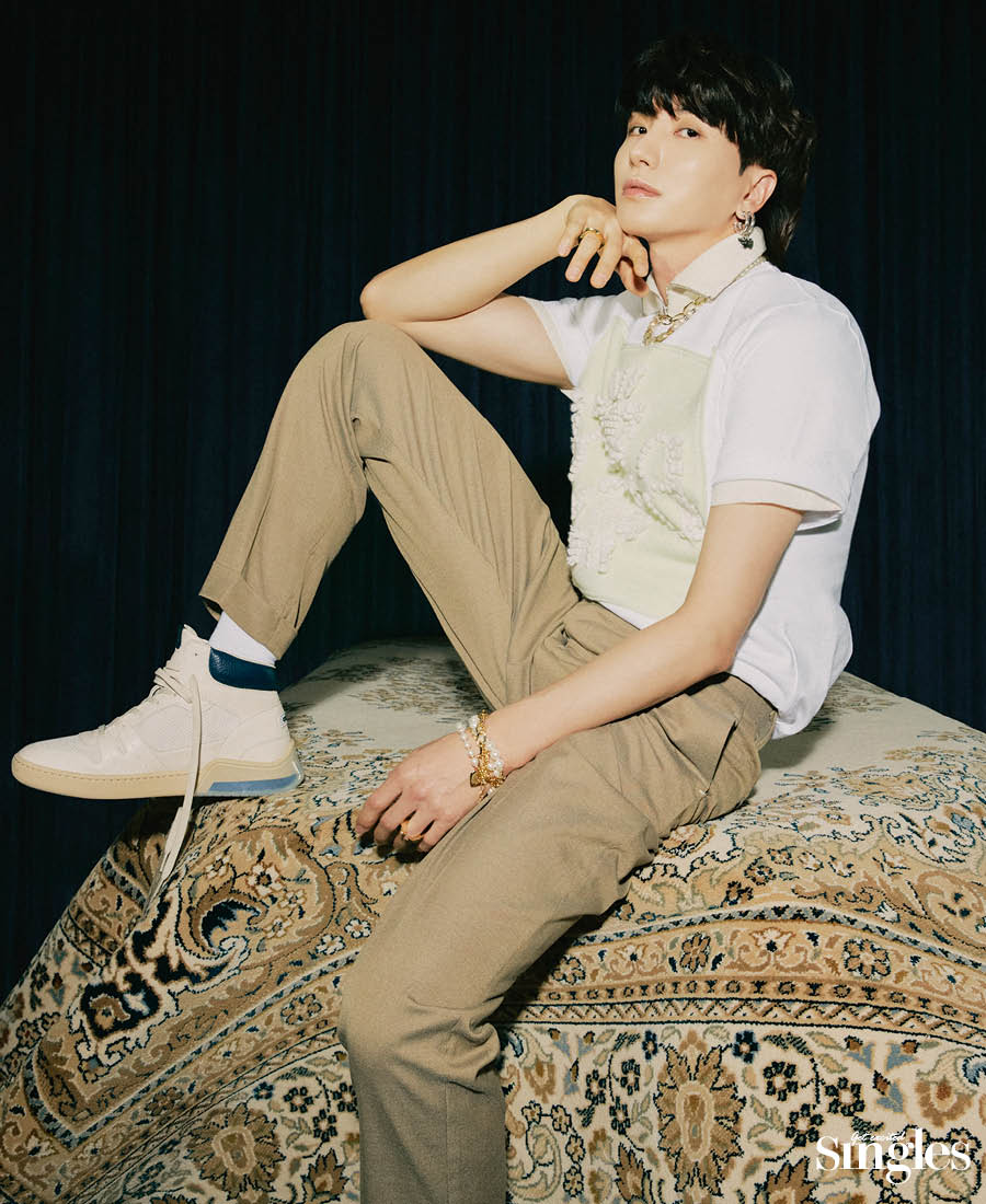 이특 코트와 니트 모두 나체, 슈즈 쏘유레슈어, 네크리스 벨앤누보, 이어링 체인지 오브 하트, 링 모두 불레또, 팬츠 스타일리스트 소장품.