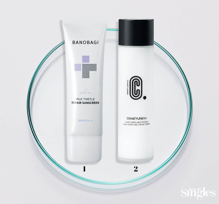 평소 칙칙한 피부라면 밀크시슬 화장품을 눈여겨보자. 실리마린은 미백 효과를 자랑하는 글루타치온 농도를 증가시킬 뿐 아니라 자외선 차단 효과를 겸비해 환한 피부 톤으로 가꿀 수 있다. 이렇듯 여러 피부 효과를 지니다 보니 밀크시슬 성분의 화장품 또한 다양하게 출시되고 있는 추세다. 밀크시슬 성분 화장품을 선택할 때는 함유량이 높은 제품을 선택하는 것이 기본. 화장품 전 성분표에서 뒤로 갈수록 함유량이 줄어들기 때문에 흰무늬엉겅퀴 열매 추출물이 앞쪽에 위치해 있는 제품을 고른다.