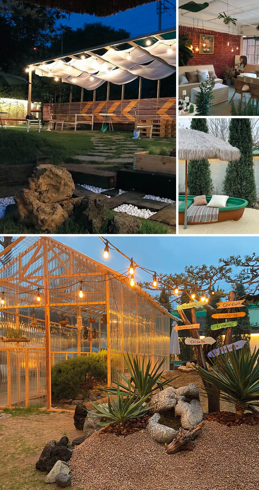 평범해 보이는 외관 너머에 놀랄 만한 정원이 있는 카페다. 입구부터 푸릇푸릇한 식물이 가득한데, 이곳의 트레이드마크는 뒤쪽으로 난 아늑한 정원이다. 두툼한 나무로 얼기설기 지어 올린 등나무 벤치와 밀짚 파라솔로 감성을 더한 방갈로 좌석 등 여러 콘셉트의 좌석으로 꾸몄다. 다소 투박하게 만든 것 같지만 자세히 들여다보면 나름의 디테일이 있다.
