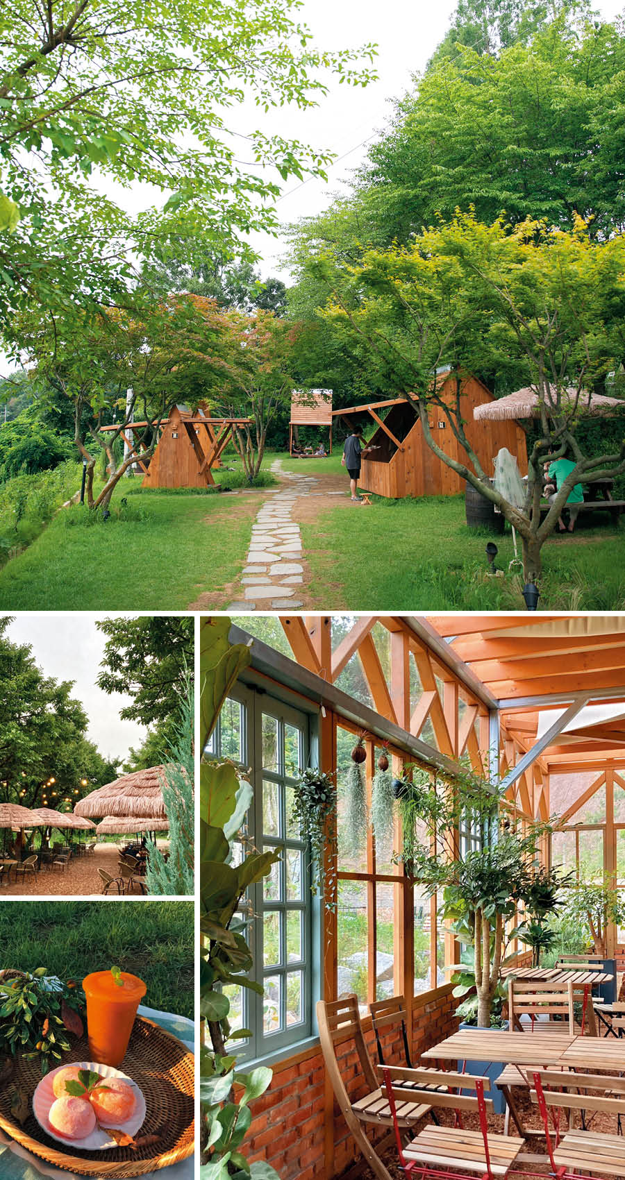 건물 사이사이 자리한 정원에는 계절에 따라 벚꽃, 라벤더, 튤립과 허브, 야생화가 핀다. 식물원 부럽지 않은 규모의 온실 포레하우스에는 망고와 바나나, 콩 등 열대지방에서 자라는 식물들도 구경할 수 있다. 인기 스폿인 우드캐빈은 주문과 동시에 현장에서 예약할 수 있고, 베이커리 카페라는 이름에 걸맞게 수준급의 제과, 제빵 메뉴도 선보이니 꼭 맛보자.