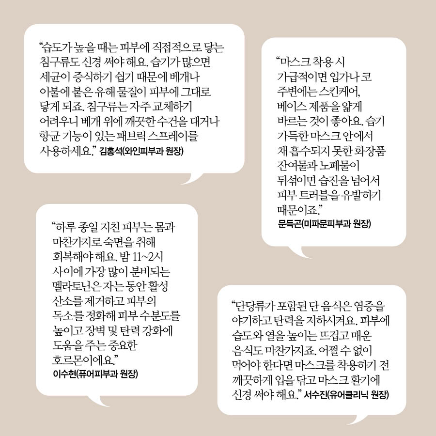사무실에서는 마스크를 벗고 제품을 바르기 어렵다. 간과할 수 있는 일상 속 습관을 꼼꼼히 따져 마스크 속 높아진 습도와 온도를 낮추자.