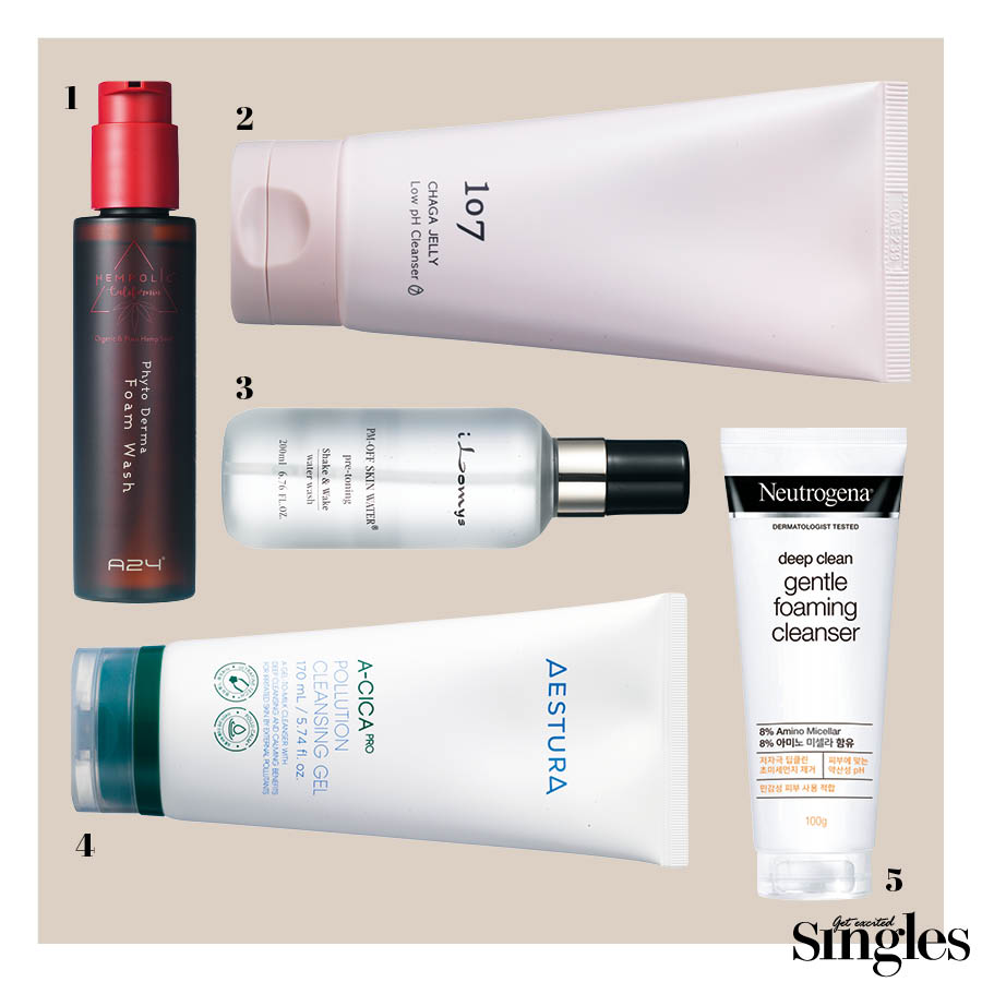 5 에스트라 에이시카 프로 폴루션 클렌징 젤 흘러내리지 않고 피부에 밀착되는 쫀쫀한 젤 제형으로 물과 만나면 오일로 변하는 것이 특징이다. 미세먼지보다 작은 클렌징 입자를 구현해 메이크업과 피지, 노폐물 등을 세밀하고 꼼꼼하게 세정한다. 170ml 3만3000원.