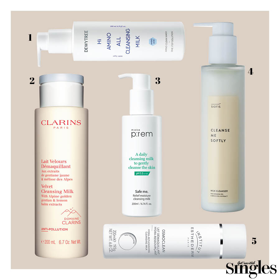 4 메이크프렘 세이프 미 릴리프 모이스처 클렌징 밀크 코코넛에서 추출한 자연 유래 계면활성제와 식물 유래 오일 성분을 섞어 모공 속 노폐물과 메이크업 잔여물을 순하게 닦아낸다. 200ml 2만4000원.