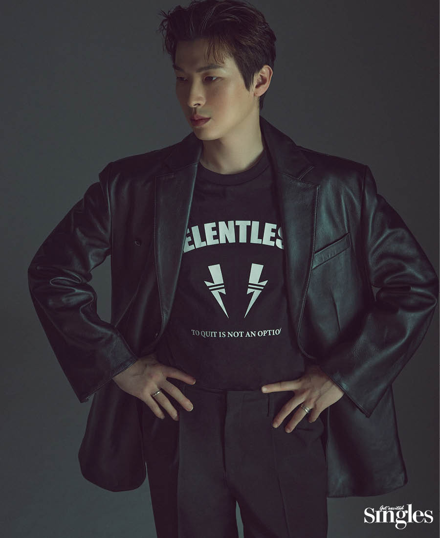 <하데스타운>과 함께 남은 한 해, 시우민의 첫 번째 목표는 <하데스타운>을 잘 해내는 것이다. “뮤지컬을 접하며 나도 할 수 있다는 걸 깨닫고 있어요. 시도하지 않았을 뿐이지 불가능은 없더라고요. 스스로의 가능성을 찾는 중이에요.” 애주가인 그는 공연을 위해 술도 끊었다. 작품과 어울리는 주식(酒食)을 추천해달라는 물음에 잠시 생각하더니, 레드와인에 만두 조합을 꺼냈다. 육즙이 가득한 만두가 좋겠다며 입맛을 다신다.