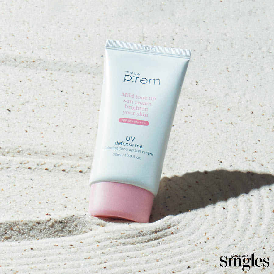 2 메이크프렘 유브이 디펜스 미 카밍 톤업 선크림 피부에 안전한 100% 논나노 무기 자외선 차단제는 진정에 효과적인 칼라민을 포함해 핑크빛 톤업을 남긴다. 50ml 2만4000원.