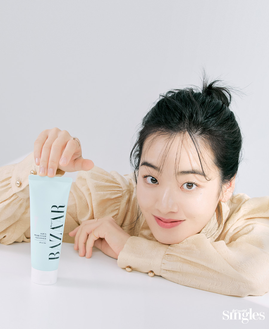 이주영의 거침없는 피부 자신감은 꼼꼼한 클렌징에 있다. 촬영 후 아이부터 립까지 짙은 메이크업을 말끔하게 지워내는 하퍼스 바자 코스메틱 아쿠아 페어 폼 클렌저를 매일 사용하는 것. 부드러운 크림 포뮬러가 모공 속 노폐물까지 개운하게 씻어낸다. 불필요한 각질까지 깔끔하게 케어하는 원스텝 클렌저로 깨끗한 피부 바탕으로 거듭날 수 있다.