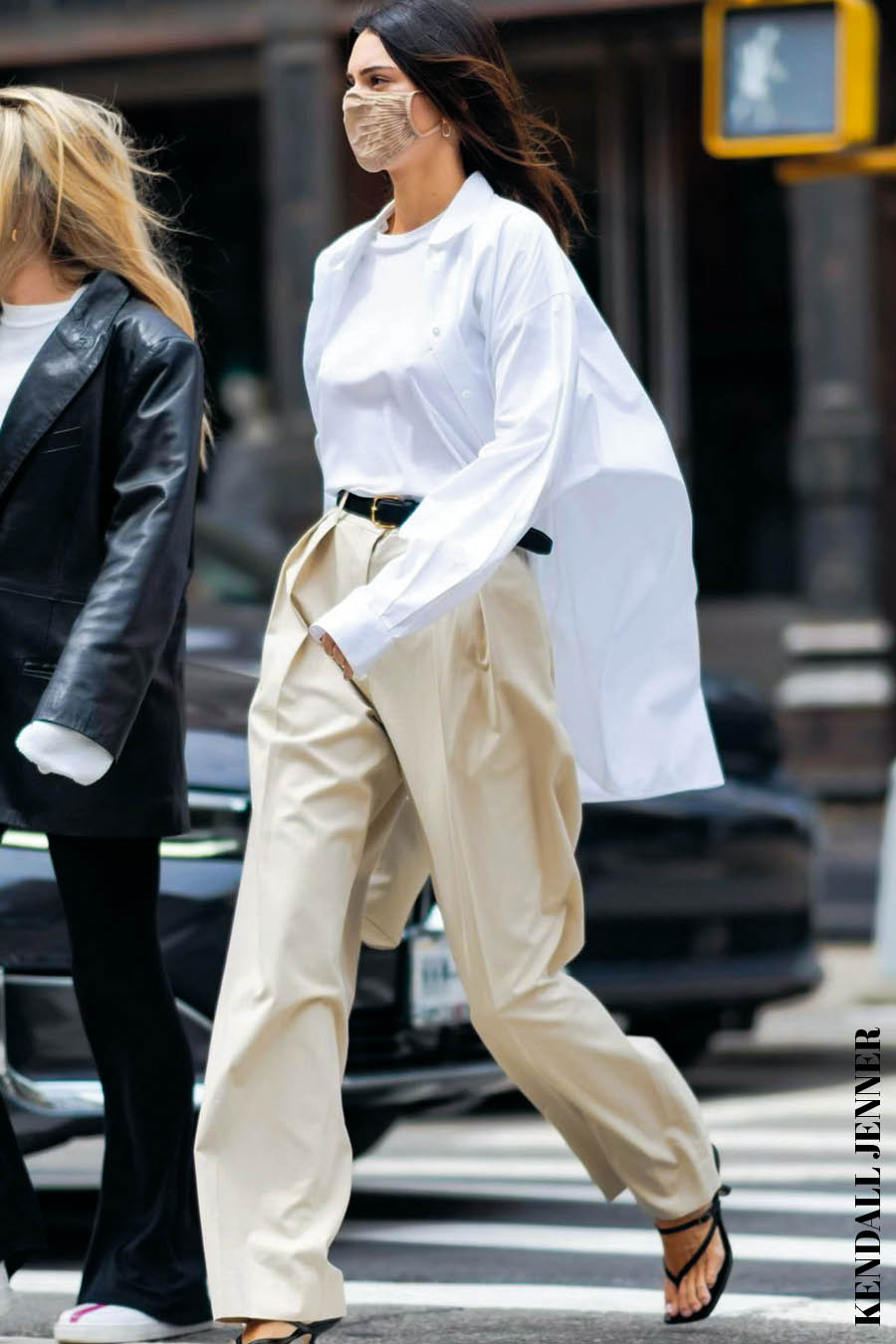 치노 팬츠와 옥스퍼드 셔츠의 평범한 조합도 켄달 제너가 입으면 남다르다. 와이드 팬츠는 하이웨이스트 디자인으로 선택해 늘씬한 몸매를 강조하고, 커다란 셔츠는 단추를 모두 풀고 아우터처럼 착용해 모던한 데이웨어로 탈바꿈했다.