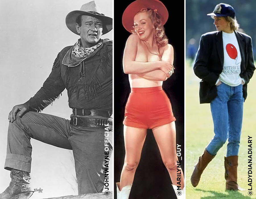 1000년이 넘는 시간 동안 살아남은 부츠는 수많은 역사를 거쳐 패션으로 부활했다. 지금의 커스텀 디자인 영역으로 확대되기까지 결정적 역할을 한 인물로는 존 웨인, 발렌타인 화보에서 장난스러운 카우 걸로 변신한 마릴린 먼로, 폴로 경기에서 데님 팬츠 위에 웨스턴 부츠를 매치해 논란을 불러일으킨 다이애나 비 등이 있다.