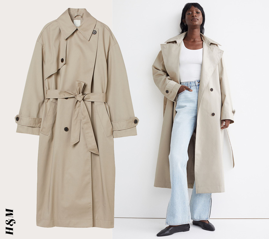 현재 쇼핑 기준 중 가격이 가장 중요하다면 SPA 브랜드 중에서 고르는 것이 좋다. 저렴하면서도 최신 트렌드로 무장한 디자인으로 가득하기 때문이다. 발목까지 길게 내려오는 길이의 H&M 오버사이즈 트렌치코트는 노치드 라펠과 탈착 가능한 허리 스트랩, 더블 브레이스티드 스타일 등 우리가 바라는 트렌치코트의 클래식한 요소까지 고루 갖추고 있다.