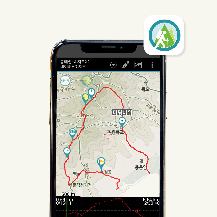 오프라인 지도 기능으로 네트워크가 불안정한 스폿에서도 사용이 가능한 ‘산길샘’. 취향에 따라 네이버 지도, 구글 지도, 국토부 등 다양한 지도를 선택해 활용이 가능하다. 등산 멤버 간 위치를 공유할 수 있다는 점과 조난되었을 경우 위치를 신속하게 알릴 수 있는 국가 지점 번호를 확인할 수 있다는 점도 많은 등산러들이 이 앱을 사용하는 이유 중 하나. 또한 배터리 유지 시간을 최우선으로 고려해 개발한 만큼 다른 등산 앱보다 배터리 유지 시간이 길다는 것도 장점이다.