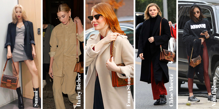 도핀 백은 많은 셀러브리티의 선택을 받았다. 클래식한 디자인으로 활용도가 높다는 것이 가장 큰 장점. 선미의 블레이저 룩과 같은 모던한 스타일부터 헤일리 비버의 워크 웨어, 니나 도브레브의 스포츠 스타일까지 안성맞춤이다. 이때 스트랩과 체인을 활용해 분위기의 변주를 주는 것이 좋겠다. 넉넉한 실루엣의 옷에는 레더 스트랩을 확장해 전체적으로 여유로운 통일감을 주고, 룩에 안정감이나 무게감을 더하고 싶다면 체인 스트랩을 활용하거나 몸에 딱 달라 붙일 수 있게 레더 스트랩을 짧게 조절하는 것을 추천한다. 마지막으로, 도핀 백과 가장 잘 어울리는 패션 아이템은 바로 롱 코트. 엠마 스톤이나 클로이 모레츠처럼 부드러운 캐시미어 코트와 함께 클래식한 겨울 스타일링을 연출하면 베스트!