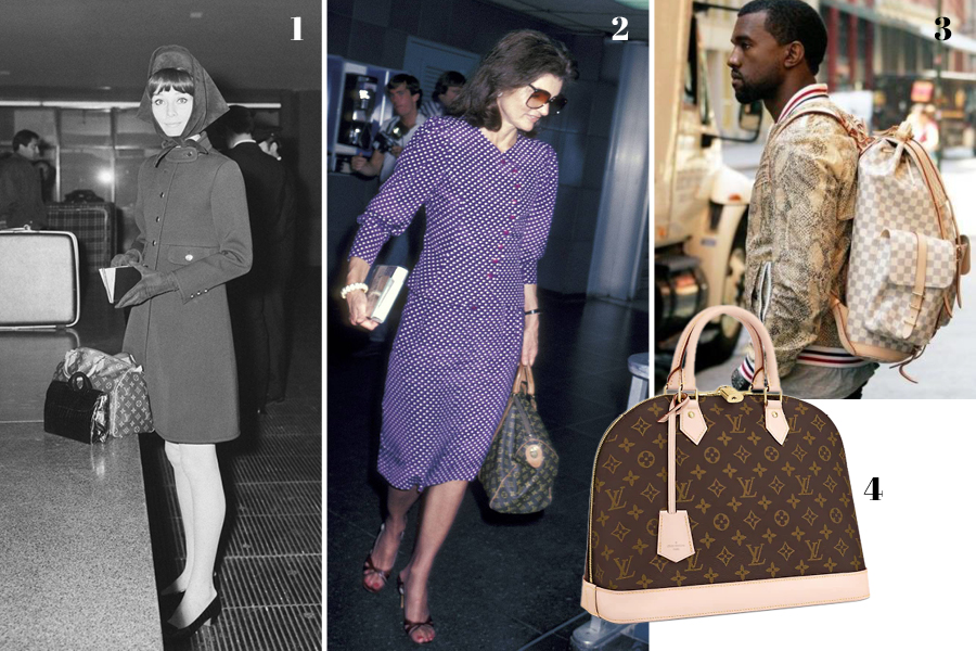 1 ‘3초 백’이라고 불리게 된 루이 비통의 백과 오드리 햅번. 2 키폴 백과 함께 여행을 떠나는 재클린 케네디. 3 코코 샤넬의 의뢰한 엘마 백의 실루엣. 4 커스텀한 루이 비통의 백팩을 맨 칸예 웨스트.