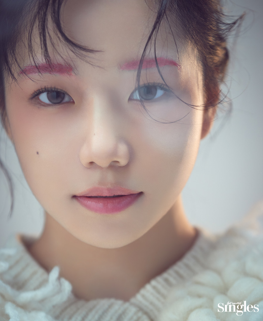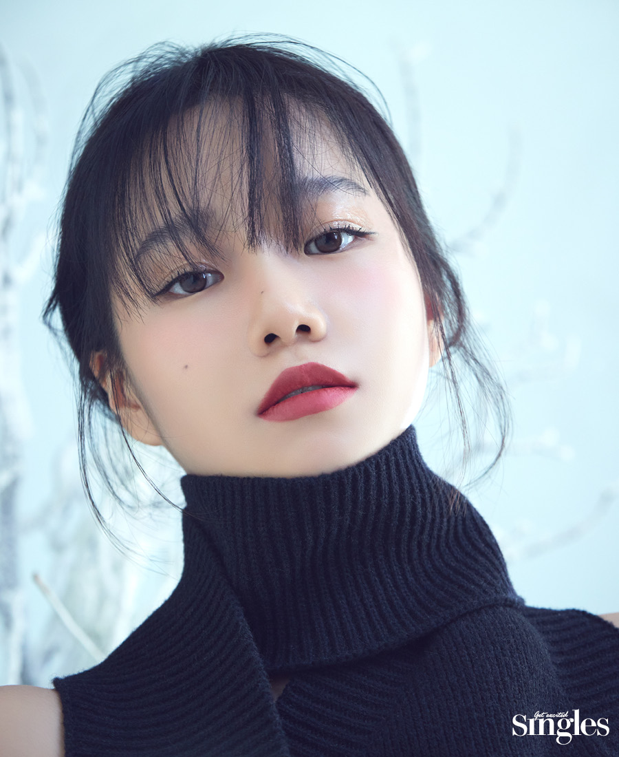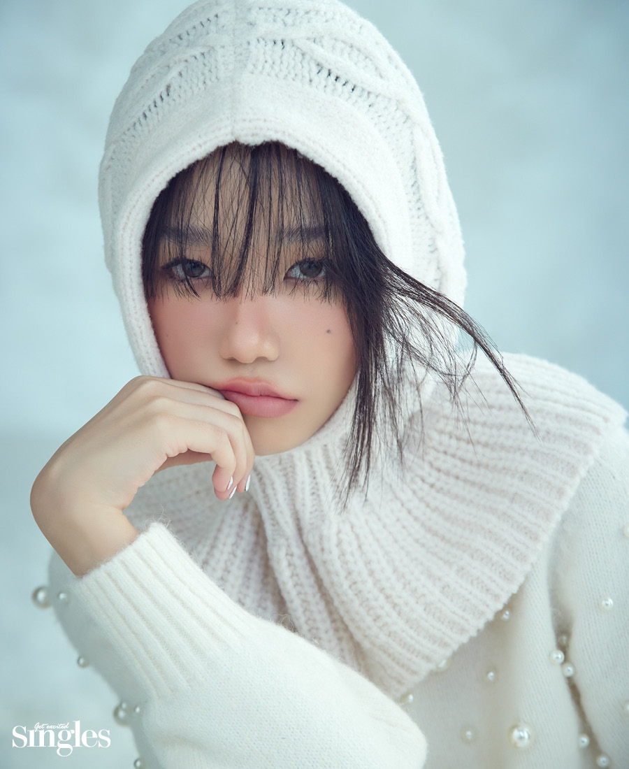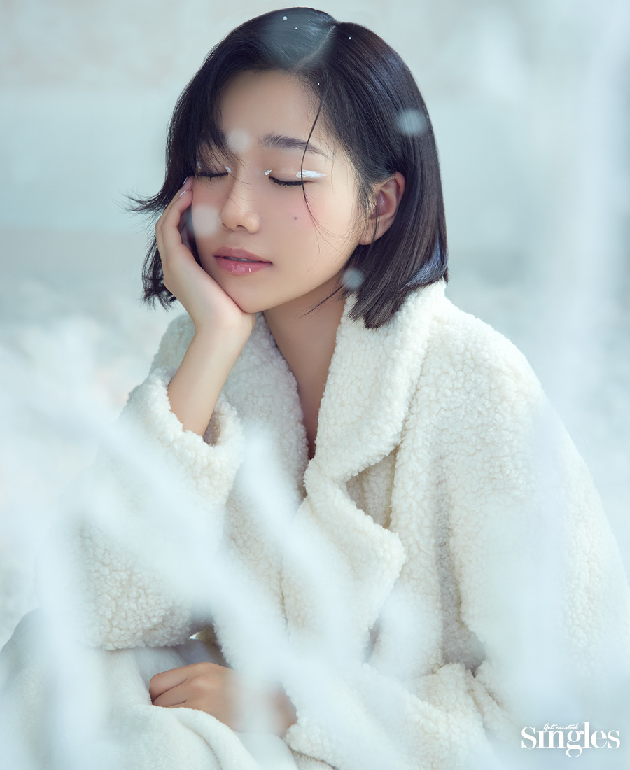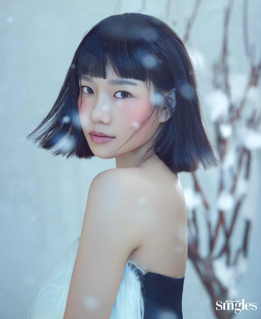 새하얀 눈, 시린 공기로 뒤덮인 겨울 풍경에 피어난 색색의 얼굴. 조유리가 그리는 윈터 홀리데이 룩.