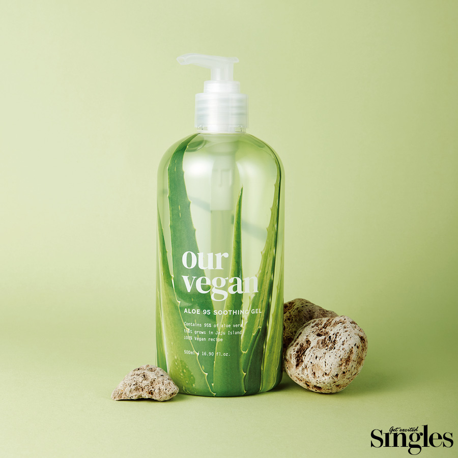 아워 비건 알로에 95 수딩 젤 차가운 성질을 지닌 알로에 성분은 외부 자극에 손상받은 피부에 효과적. 제주에서 채취한 알로에베라잎수가 풍부하게 들어 있어 바르는 즉시 청량한 쿨링 효과를 선사한다. 낮은 기압과 온도에서 추출하는 감압 증류법으로 유효 성분을 안정적으로 추출해 예민해진 피부를 빠르게 다독인다. 수분을 채우는 녹차, 진정 효과의 어성초, 피부 활력을 높이는 소나무, 피부 수분 손실을 방지하는 녹나무 성분을 더해 오랜 시간 피부가 촉촉하고 편안하다. 약산성 수딩 젤이 깔끔하게 스며들어 흐트러진 피부 밸런스까지 맞춰주는 기특한 아이템. 500ml 1만8000원.
