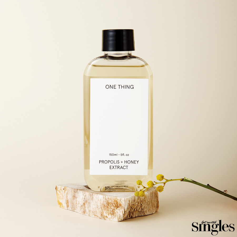 원씽 제주 프로폴리스+꿀 추출물 원액 제주에서 채취한 꿀과 프로폴리스를 사용해 보습 및 영양을 공급한다. 프로폴리스는 꿀벌이 자신을 보호하기 위해 만들어내는 물질로 피부 진정과 영양 공급에 효과적. 유효 성분을 피부에 온전히 전달하기 위해 원재료에 열을 가하거나 알코올을 사용하지 않은 저온 장기 숙성 추출법을 선택했다. 히알루론산과 비타민 B 복합체가 다량 함유되어 건강하고 촉촉한 피부로 가꾸는 데 도움을 준다. 300ml 1만4800원.