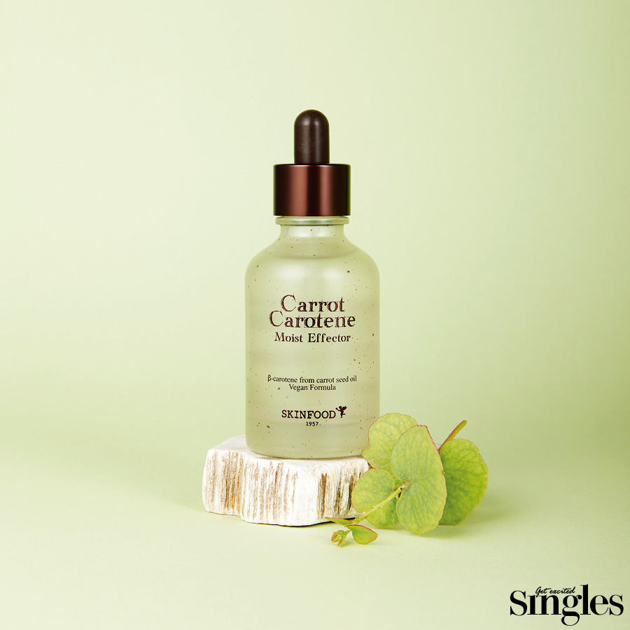 스킨푸드 캐롯 카로틴 모이스처 이펙터 제주에서 자란 유기농산물 인증을 받은 무농약 당근을 사용했다. 채소의 영양소를 고스란히 보존하는 조리법 중 하나인 찜의 원리를 적용. 화학적 용매를 사용하지 않은 자연 요법인 당근찜 추출법을 통해 순수한 당근 추출물을 75% 담아 완성했다. 당근씨 오일에서 얻은 베타카로틴이 지친 피부 컨디션을 끌어올리는 데 최적. 52ml 2만7000원.