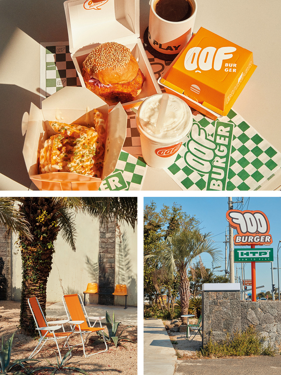 뜨는 동네에는 그곳을 대표하는 버거집이 있다. 미국 로드 트립을 하다 만날 법한 주황 간판이 반겨주는 곳. 복합 문화 공간 하우투플레이(How to Play)에 자리한 웁(OOF)버거는 애월을 대표하는 명소가 될 전망이다. 25년간 방치된 냉동 창고의 골격을 그대로 살린 건물에 첫 번째로 입점한 수제 버거 브랜드 웁버거는 번부터 소스까지 매장에서 직접 만든다. 추천 메뉴는 소고기 패티와 채소, 치즈가 어우러진 클래식 버거. 웁버거만의 특제 소스로 맛을 낸 치킨버거는 시그너처 메뉴다.