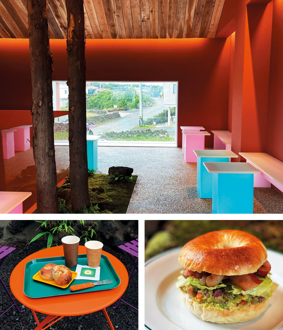 베이글림림(林林)은 화덕 베이글을 선보이는 베이글 카페다. 제주 한라산의 삼나무로 지붕을 만들고 커다란 통창을 내 주변의 밭과 바다가 한눈에 들어온다. 어릴 적 뉴욕으로 유학을 떠나 20년 이상 살다온 주인장이 뉴욕에서 아침에 먹던 베이글이 그리워 직접 만들기로 결심하고 이곳에 자신의 로망을 펼쳐냈다. 화덕 자체가 시그너처라 할 수 있을 만큼 데크 오븐으로 구운 베이글과는 맛이 확연히 다르다.