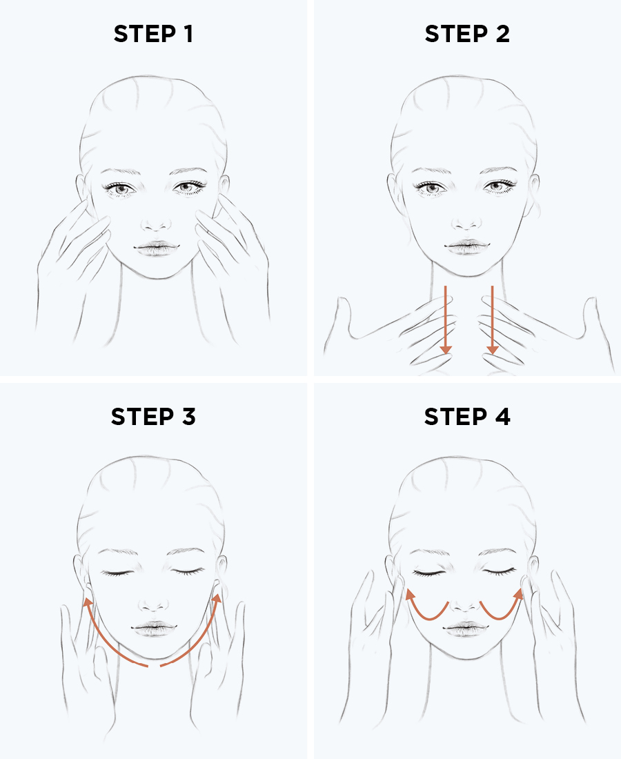 피부의 영양 공급과 불필요한 노폐물 배출에 충분한 효과를 볼 수 있는 가장 간편한 방법은 림프절 마사지. 림프관의 원활한 순환을 돕는 셀프 테크닉을 통해 막혔던 피부의 흐름을 활성화한다. 그날 쌓인 독소는 그날 밤에 바로 배출시켜 어린 세포가 늙은 세포로 바뀌지 않도록 해야 한다.