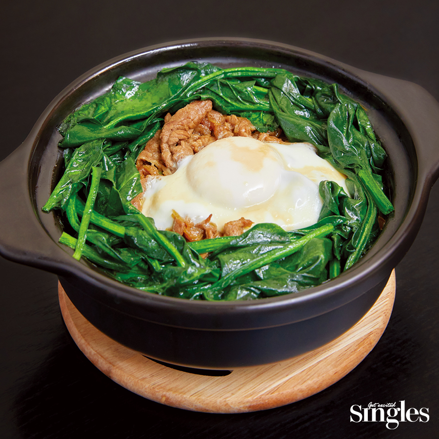 STEP 6 밥 위에 볶아둔 소고기, 시금치, 달걀을 넣고 뚜껑을 닫는다.