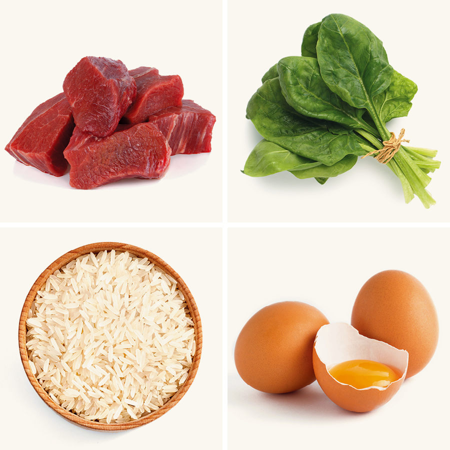 재료 쌀 150g, 소고기(불고기용) 150g, 시금치 100g, 달걀 1개, 굴소스, 간장, 치킨파우더, 후추, 설탕, 참기름, 소금