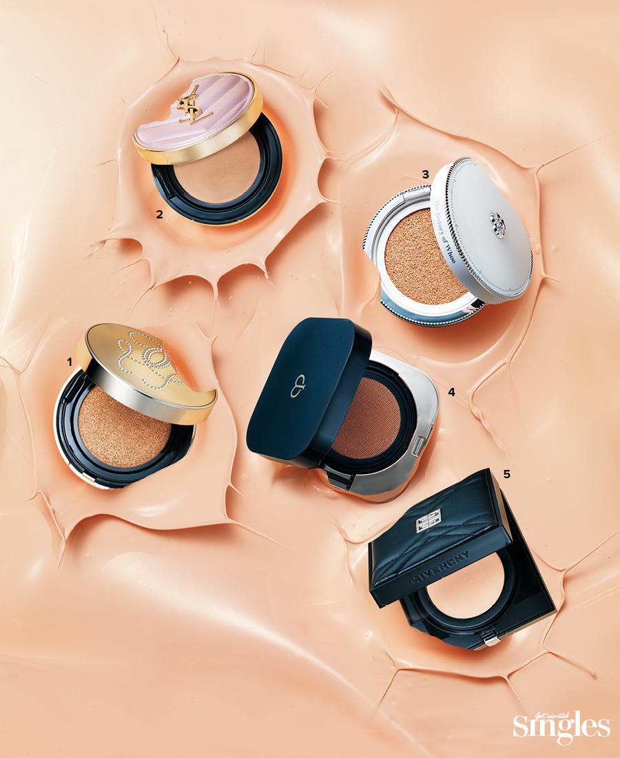 5 지방시 뷰티 꾸뛰르 캡슐 에디션 땡 꾸뛰르 쿠션 지방시 패션 액세서리인 안티고나 백이 감각적인 땡 꾸뛰르 쿠션으로 탄생했다. 다크닝 없이 처음 메이크업 그대로 유지하는 독보적인 텍스처가 얇고 고르게 밀착되어 뭉침 없이 매끈한 벨벳 광채를 연출한다. 하트 모양의 퍼프로 좁은 부위까지 정교하게 메이크업을 완성할 수 있다. 13g 8만8000원대.