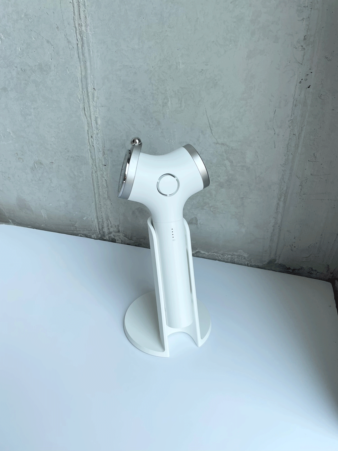 멀티 디바이스는 손잡이 위쪽에 피부 탄력과 화장품 흡수를 돕는 ‘인텐시브 케어 헤드’와 피부 진정을 돕는 ‘쿨링 케어 헤드’가 Y자 모양으로 달려 있는 형태. 여기에 ‘아이 케어 헤드’를 활용하면 눈가, 입 주변 등 굴곡진 부위도 섬세하게 관리할 수 있다. 편안한 그립감을 위한 손잡이, 제품 사용 중 팔의 피로도를 줄여주는 헤드 각도 그리고 피부 접촉 면적을 넓힌 사이즈 등은 포항공대와 산학 협력을 통해 완성한 인체공학적 디자인의 결과물.