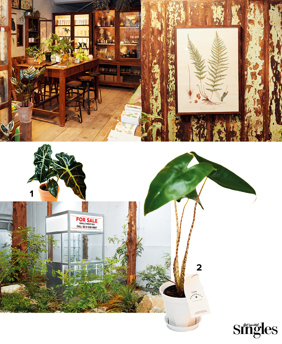 식물을 처방전으로 내어주는 곳이 있다. 복잡하고 빠른 일상에 적응하느라 알게 모르게 마음의 병을 얻은 이들을 위해 시작된 슬로우파마씨가 그 주인공. 성수동의 넓은 공간에 자리 잡고, 식물을 통해 보다 느리고 침착한 라이프스타일을 제안한다. 도시에서의 인위적인 즐거움에 지쳐 식물을 찾게 된 이구름 대표는 식물을 돌보는 일이 본질적으로는 나 자신을 살피는 일과 같다고 말한다. 이를 더 많은 사람들이 경험했으면 하는 바람으로 쇼룸을 오픈한 것. 그 목적에 걸맞게 도시 환경에 훼손되지 않은 자연의 정취가 느껴지면서도 성수동이라는 동네와 잘 어우러지도록 공간을 구성했다. 크고 작은 초록 식물에 나뭇가지, 솔방울, 도토리 등이 더해져 마치 도심 한복판의 숲속을 연상케 하는 쇼룸은 들어서는 이들의 몸과 마음을 자연히 치유할 것만 같다.