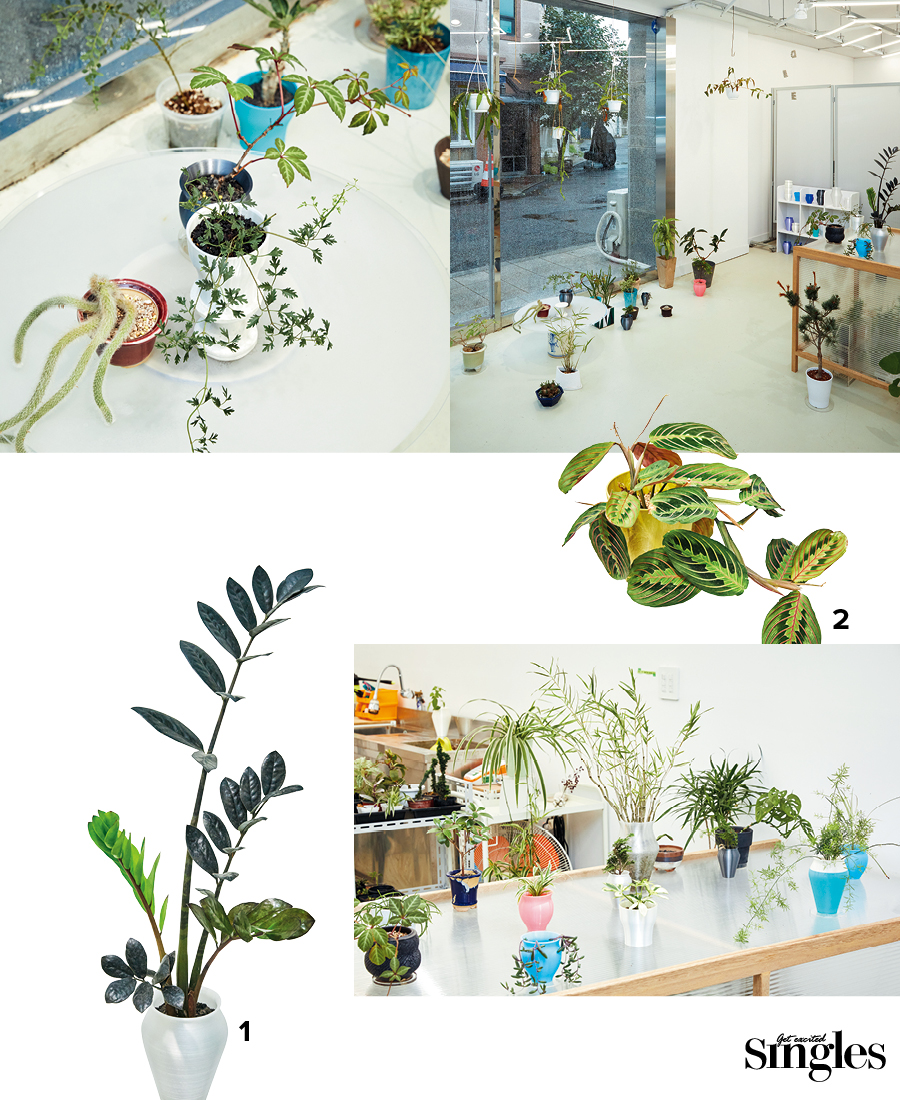 단순히 싱그럽고 온순하다고 생각했던 식물이 사실은 성격이 급하거나, 수다스럽거나, 시크하다면? 플랜트소사이어티1은 사람들이 쉽게 생각하기 힘든 식물의 개성에 대해 고민하고, 각각의 고유한 멋을 중요시 여긴다. 차가운 스틸 선반, 고르지 않은 페인트 벽면, 형광 조명 등으로 이루어진 쇼룸에는 범상치 않은 분위기가 흐른다. 여느 식물 상점과는 달리 식물의 조형미, 창조성이 돋보이도록 설치한 장치들이다. 주로 잎의 패턴이 특이한 수입 관엽식물을 소개하면서 식물의 따뜻하고 감성적인 면보다는 형태에서 느껴지는 미감, 다채로움으로부터 영감을 얻어 다양한 작업을 전개한다. 잘 기르고 잘 돌봐야만 하는 대상 같던 식물이 이곳에서는 멋진 작품으로 거듭난다. 우리가 몰랐던, 처음 만나는 식물의 세계가 펼쳐진다.