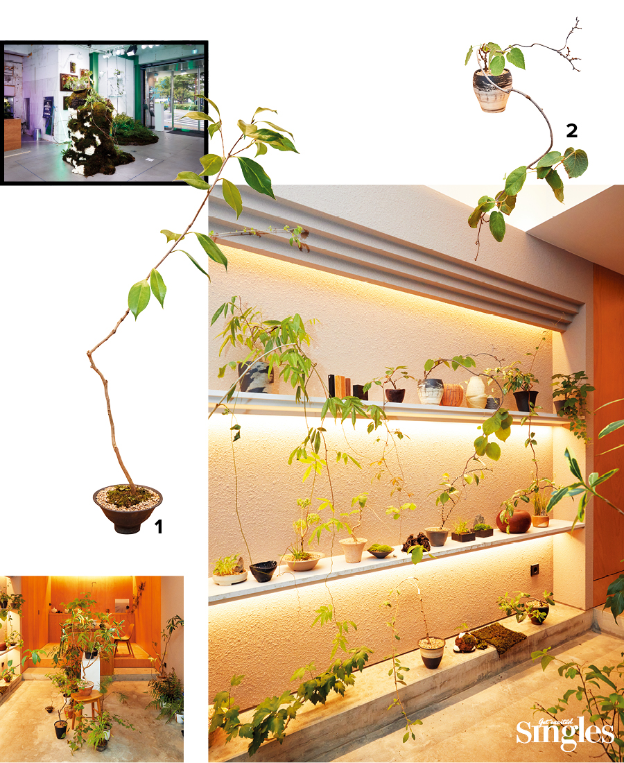 사막에서 자란 한 그루의 나무처럼, 하나하나 의미 있고 가치 있는 나무를 만들겠다는 가드닝 스튜디오. 단풍나무, 동백나무 등 주로 산에서 볼 수 있는 야생 초목을 전문으로 다루는 사사막은 현대미술을 전공한 이승엽 대표가 나무를 주제로 한 여러 작품을 대중에게 선보이는 공간이기도 하다. 인간에 의해 도시 한가운데로 옮겨진 식물은 자연에 놓였을 때와 그 기능과 역할이 다르다고 판단해, 본래 식물이 지닌 고유한 아름다움에 자신만의 해석을 더하는 작업을 한다. ‘후반 작업’이라고 불리는 이 과정은 하나의 오브제를 만들듯 나무 각각의 수형과 특징을 시각적·심미적으로 탐구해 가지, 이파리 등을 비워내는 식으로 이뤄진다. 때문에 이곳의 식물은 모든 이파리와 가지에 작가의 의도를 담아낸 하나의 작품이라고 볼 수 있다. 같은 종의 나무라 해도 이러한 후반 작업을 거치면 다양한 형태를 지니게 된다. 쇼룸은 야생 초목이 가진 절제와 단순함의 매력을 극대화하도록 구성했다. 중앙의 ‘마당’을 중심으로 실내와 외부 공간이 나뉘는데, 방문하는 이들이 그 경계를 직접 느낄 수 있도록 낮은 턱과 계단을 이용해 설계했다. 작은 보폭으로 내부를 오르내리며 야생 초목을 감상하다 보면 미술관에 온 듯한 느낌이 든다. 앞으로도 ‘도시 속 식물’을 주제로 여러 식물 작업을 진행해 대중에게 선보일 계획. 가드닝 수업이나 외부 작가들과 협업한 전시도 꾸준하게 열리고 있다.