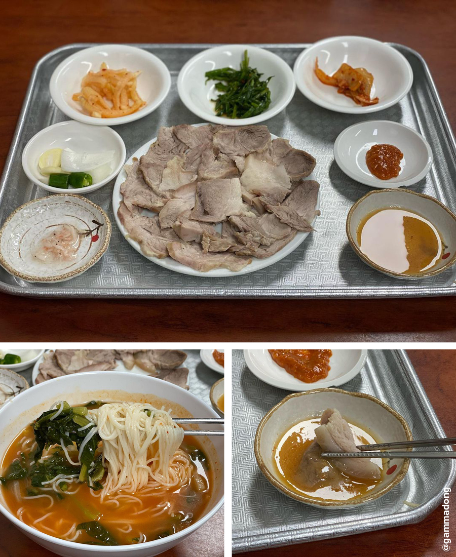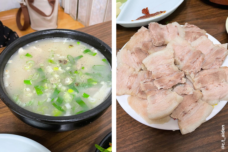 부산에서 가장 오래된 돼지 국밥집으로 유명한 소문난 돼지 국밥. 이곳은 1938년에 오픈해 4대째 운영 중인 노포 중에 찐 노포집이다. 메뉴로는 수육백밥, 따로국밥, 돼지국밥이 있는데 돼지국밥은 밥이 말아져 있는 상태로 나오고, 따로국밥은 고기가 포함된 국에 공깃밥이 따로 나온다. 수육백반은 육수만 있는 국에 공깃밥, 수육이 따로 나오는 차이점이 있다. 국밥의 국물은 곰탕같이 맑은 것이 특징! 수육은 부드럽고 냄새가 나지 않아 먹기 좋다. 조금 더 자극적인 맛을 원한다면 함께 나오는 부추김치를 풀어먹으면 더욱 감칠맛 나는 국물을 맛볼 수 있다.