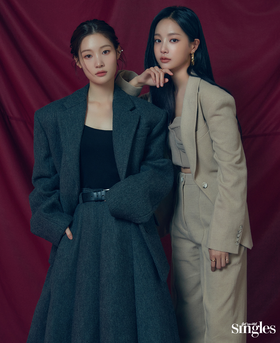 연우 슈트 세트업 하우스 오브 다그마 by 비이커, 니트 톱 아키라나카 by 아데쿠베, 이어링 사카이, 링 스타일리스트 소장품.